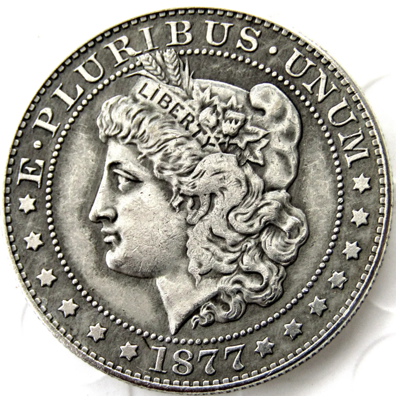 Honor the spirit of 19th-century American coinage with this Reproduction 1877 Morgan-Style Commemorative Half Dollar , finished in a polished silver-plated coating that reflects the classic look of historic U.S. coinage. Though not an official U.S. Mint issue, this replica is inspired by the iconic Morgan Dollar design , featuring Lady Liberty on the obverse and a proud eagle on the reverse , scaled to a half-dollar size .
